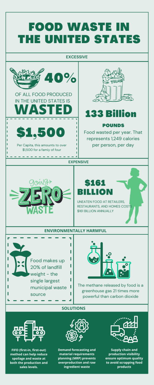 So what’s the solution? We as individuals can and should compost, repurpose leftovers, avoid over-purchasing, embrace imperfect produce, etc. But with 75% of food waste occurring before it even reaches grocery stores, food distributors have an even greater responsibility to minimize food waste as much as possible! And the motivations for doing so are not purely altruistic. Reducing waste in food distribution has significant cost savings ranging from the cost of food purchased to the disposal costs. Food distributors must implement strategies to reduce waste and benefit not just the plant, but the company’s bottom line.